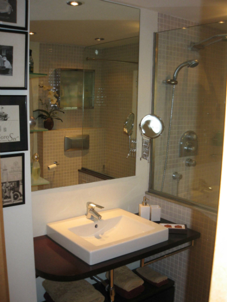 Bathroom with thermostatically controlled shower