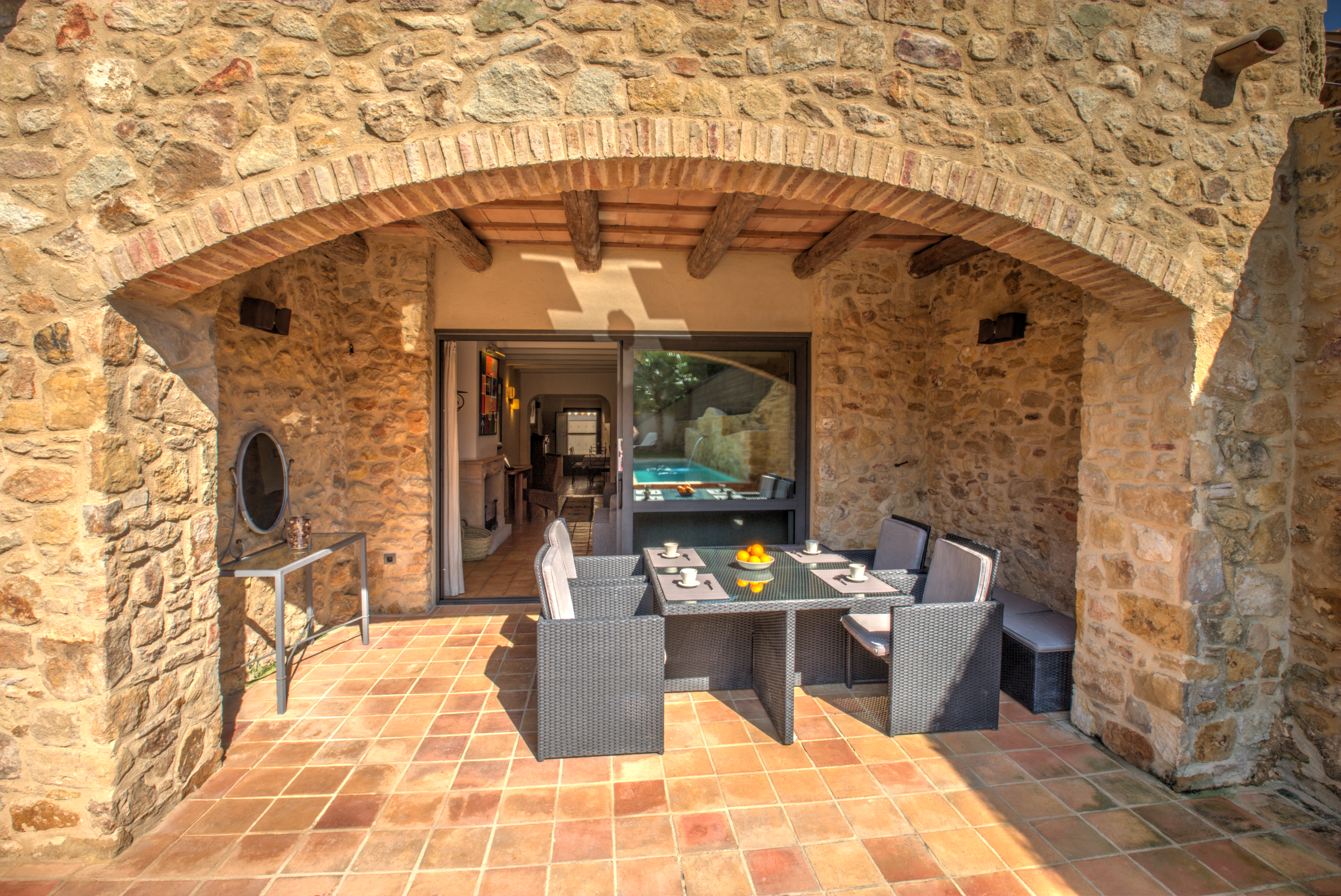 Vivienda totalmente rehabilitada, combinando la antigüedad de la casa original del S. XVIII y el vanguardismo del S.XXI, ubicada en el centro del pueblo Medieval de Pals (Girona).
